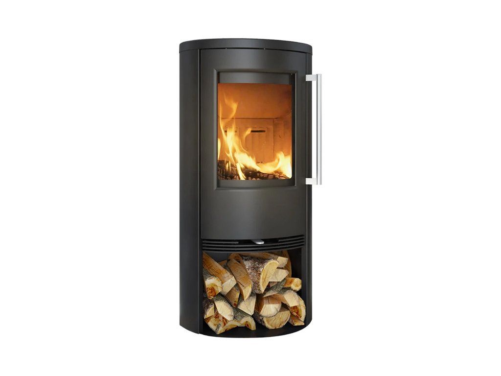Eliptická liatinová doska a konvekčná mriežka – tiež z liatiny. Jemné tvary sa opakujú aj v elegantných liatinových dvierkach, ktoré sa zatvárajú pomocou dvoch tepelne odolných magnetov.