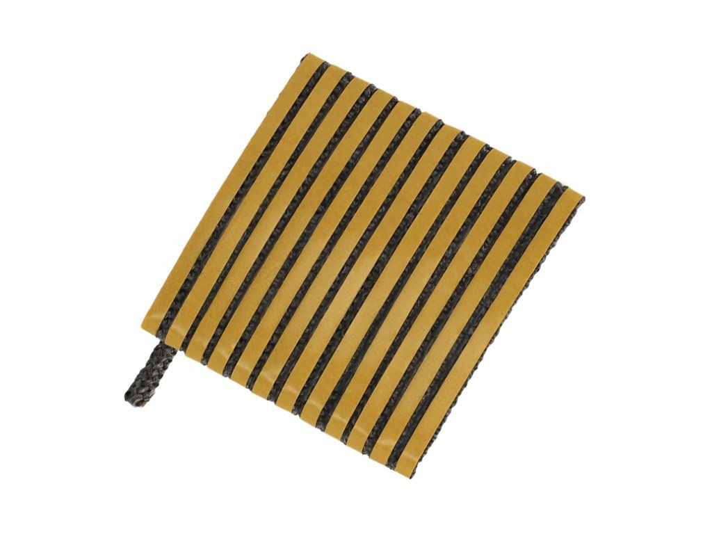 Plochá, lepiaca, žiaruvzdorná šnúra pre utesnenie krbových skiel, sporákových platní, komínov, dymovodov. Šírka 10 mm, hrúbka 4 mm, dĺžka 1 meter. Obrázok je len ilustračný.